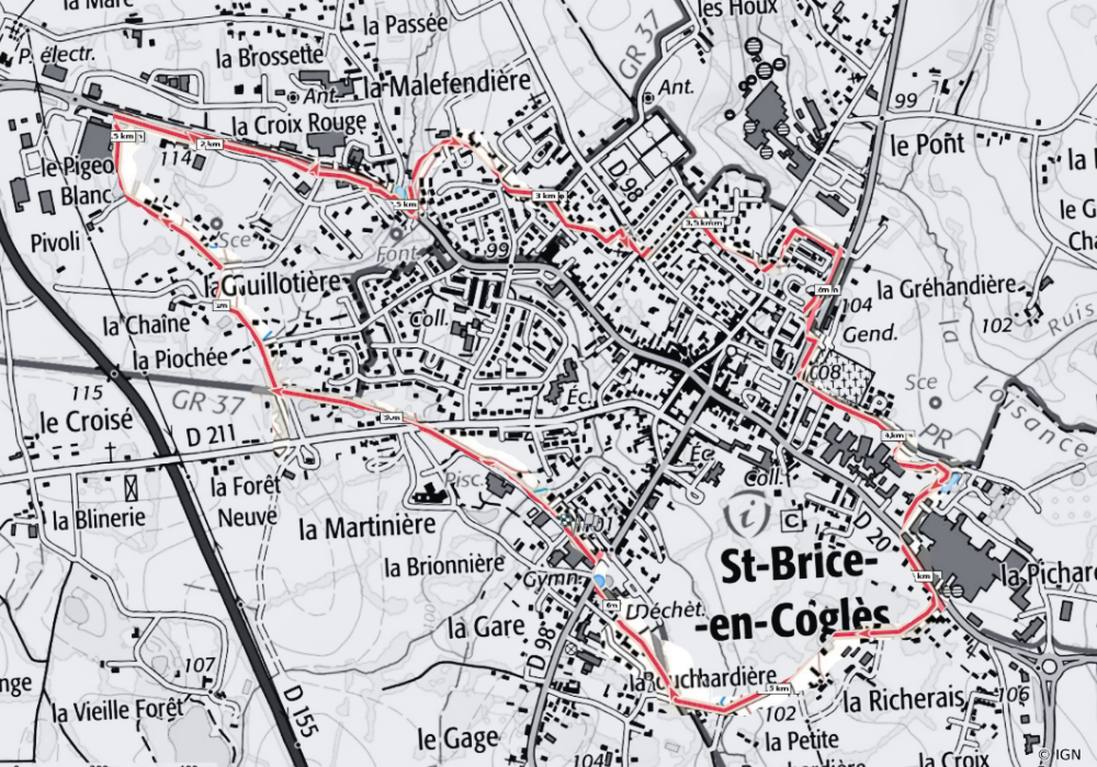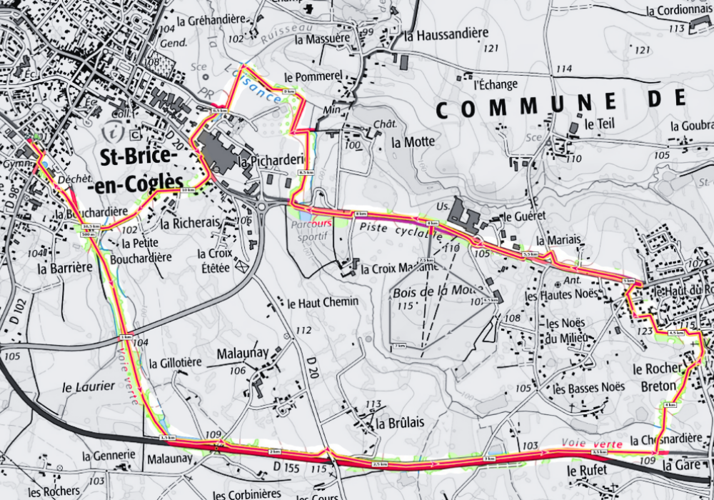 Deux parcours de marche ont été créés au départ du complexe sportif de La Brionnière de Saint-Brice-en-Coglès. L’un de 6km et le second de 11,3km.